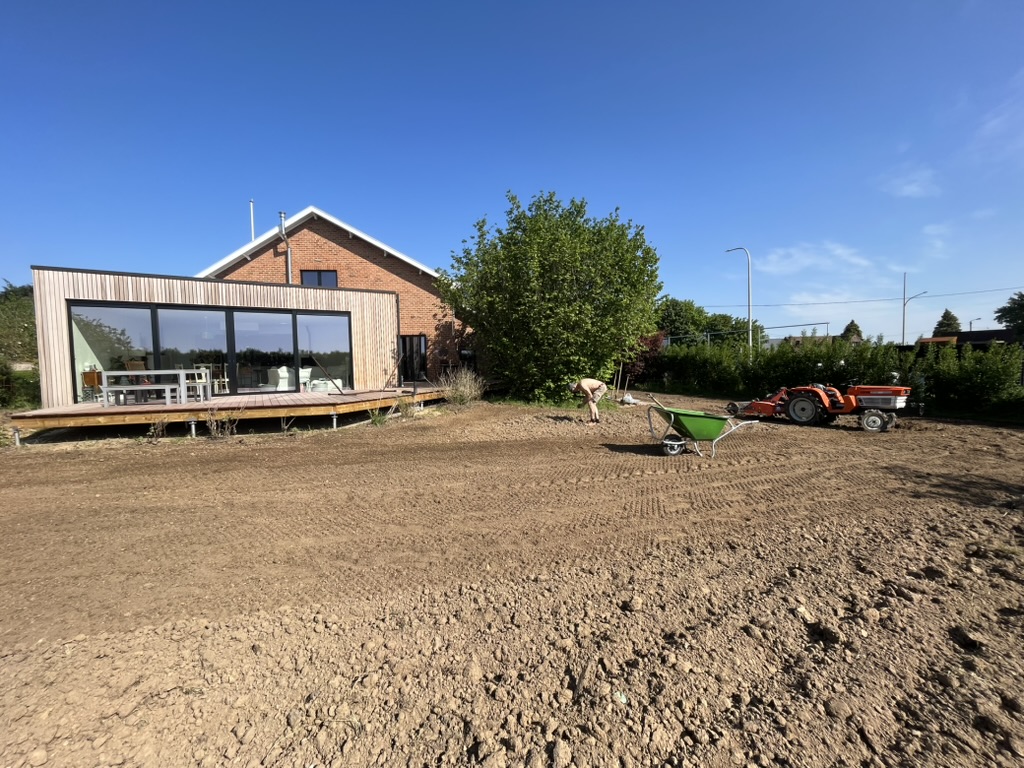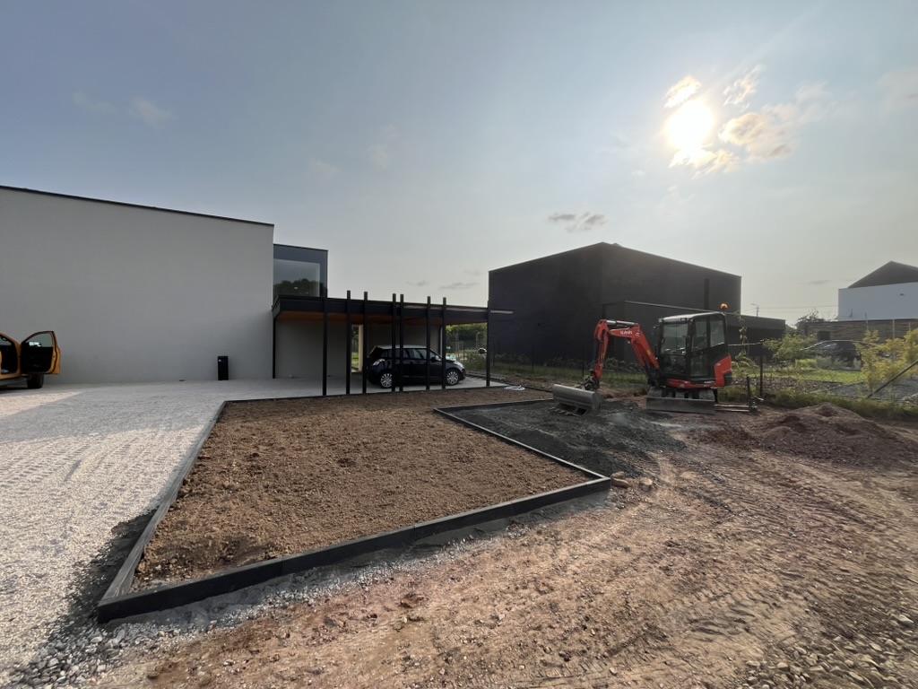 Egouttage, pose de citernes, fondations, aménagements extérieurs, pelouse,…